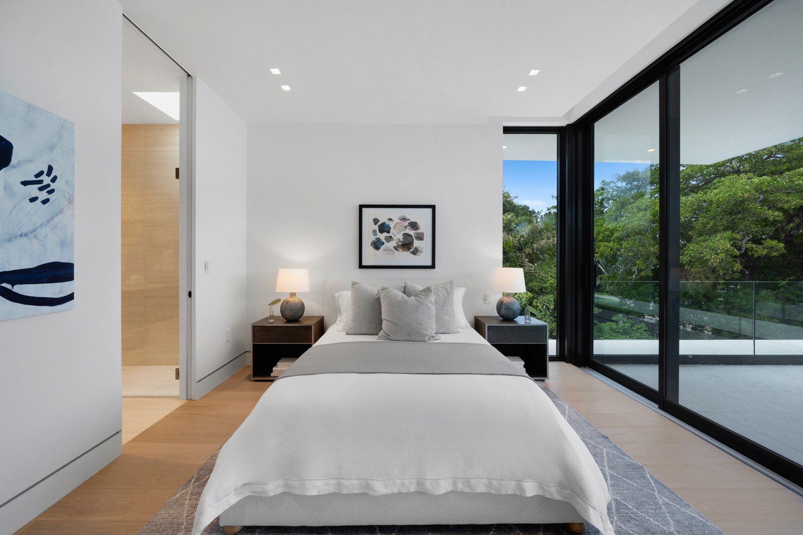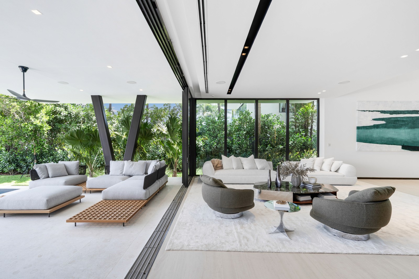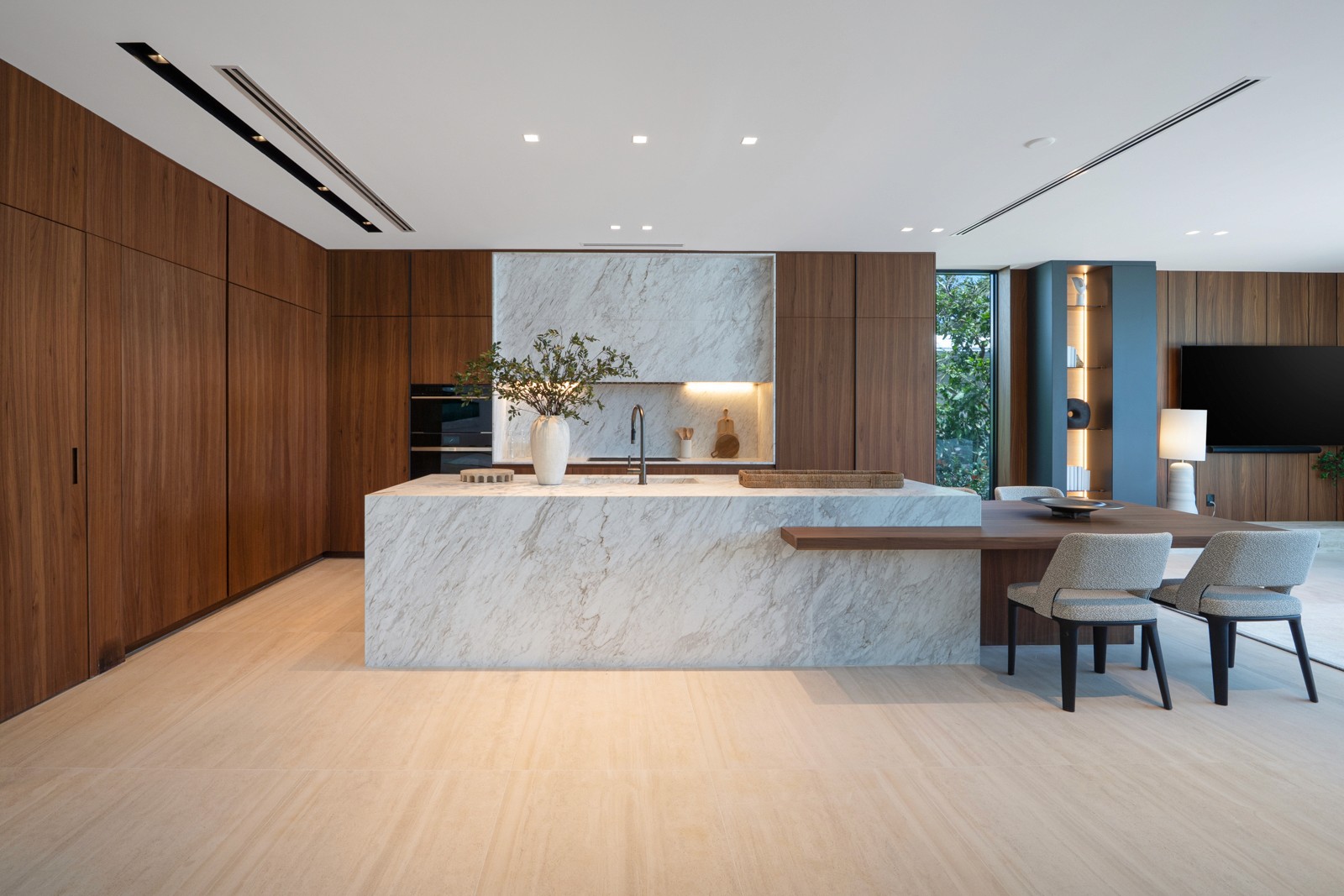 Minotti furnishings define its contemporary elegance, where sculpted architecture plays with light and shadow. Soaring ceilings, a striking floating staircase, and voluminous spaces create grandeur.