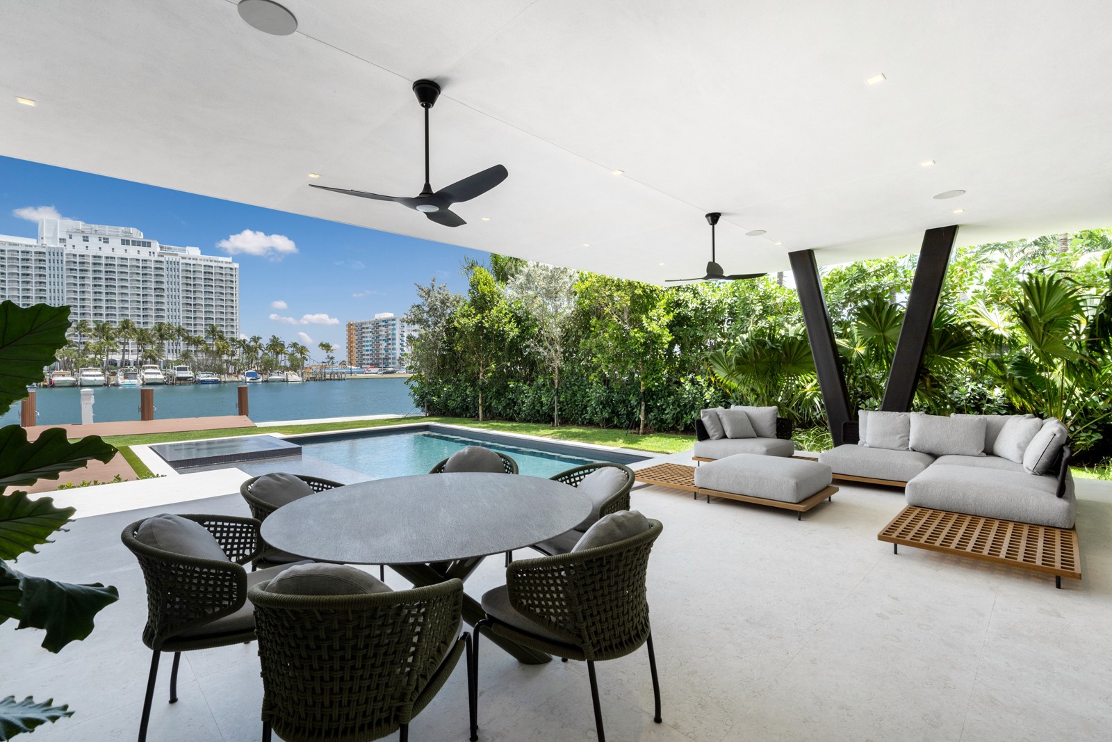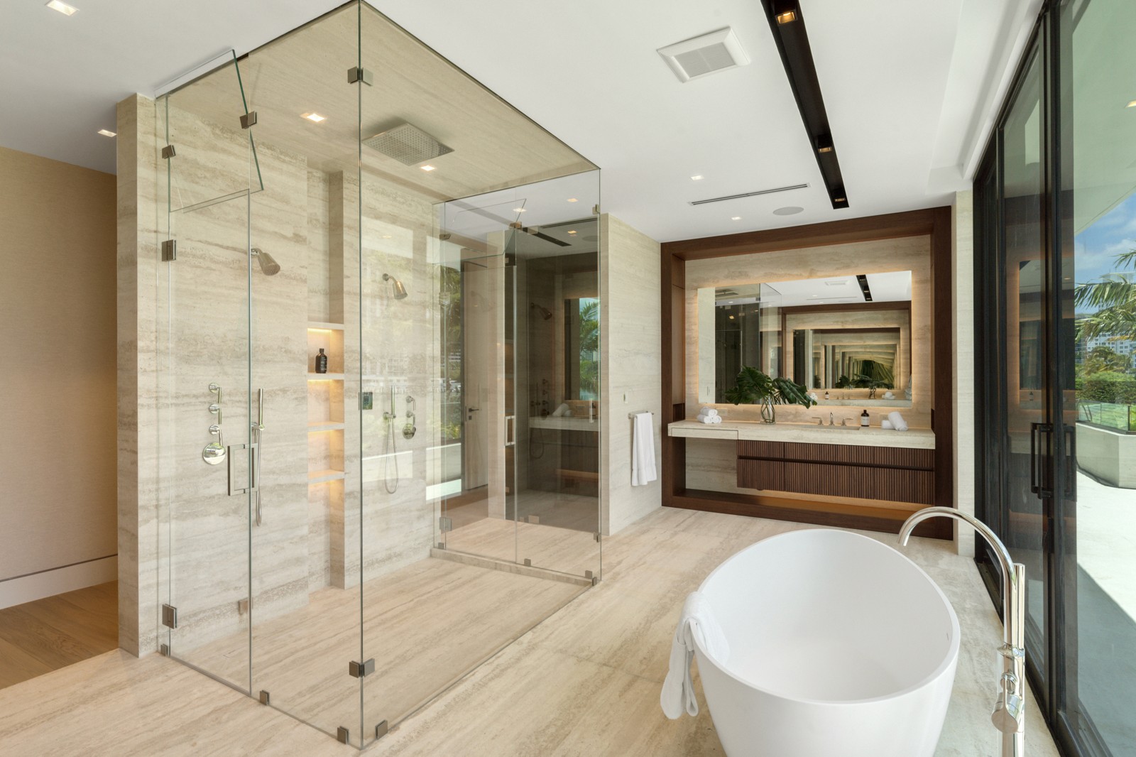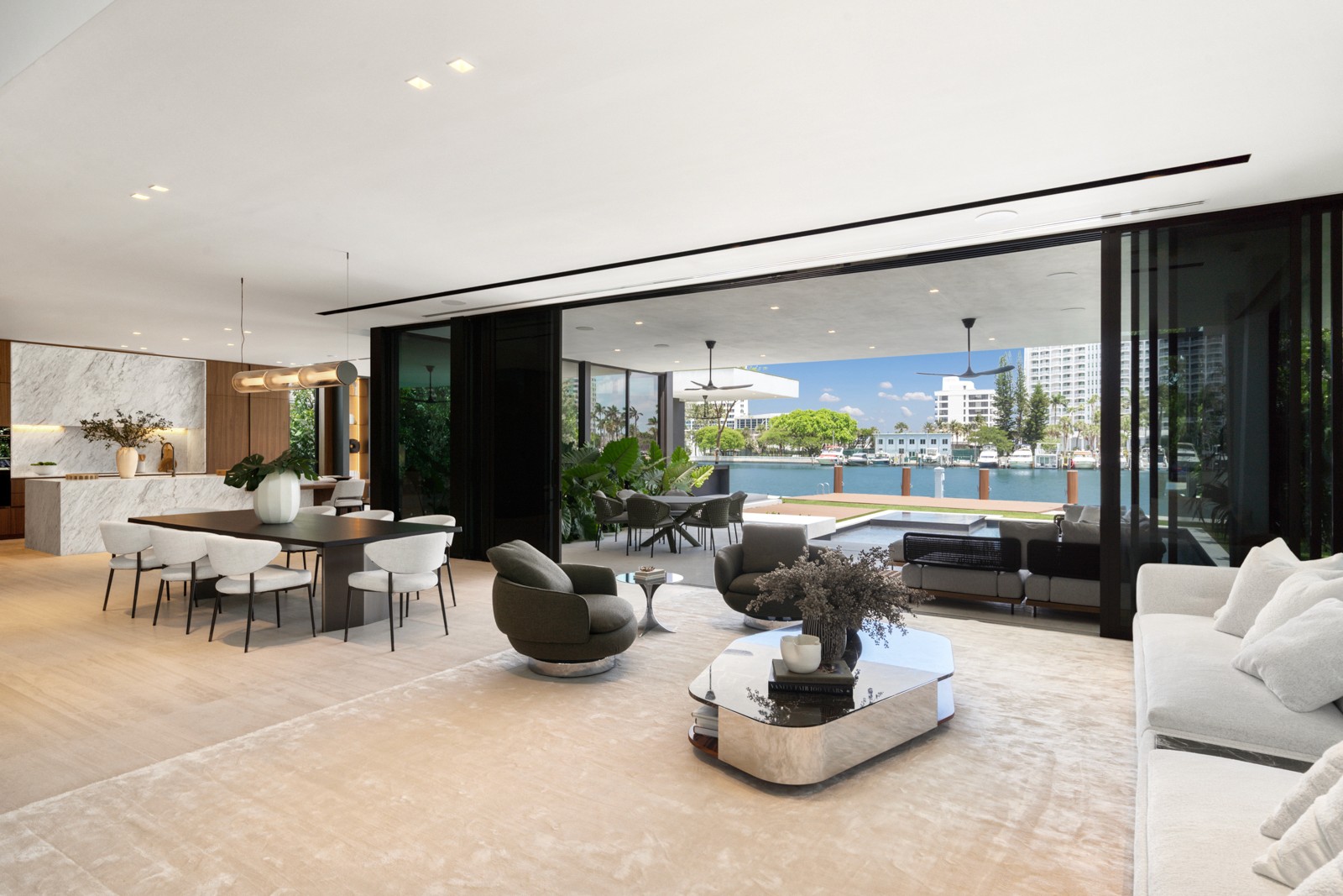 Minotti furnishings define its contemporary elegance, where sculpted architecture plays with light and shadow. Soaring ceilings, a striking floating staircase, and voluminous spaces create grandeur.
