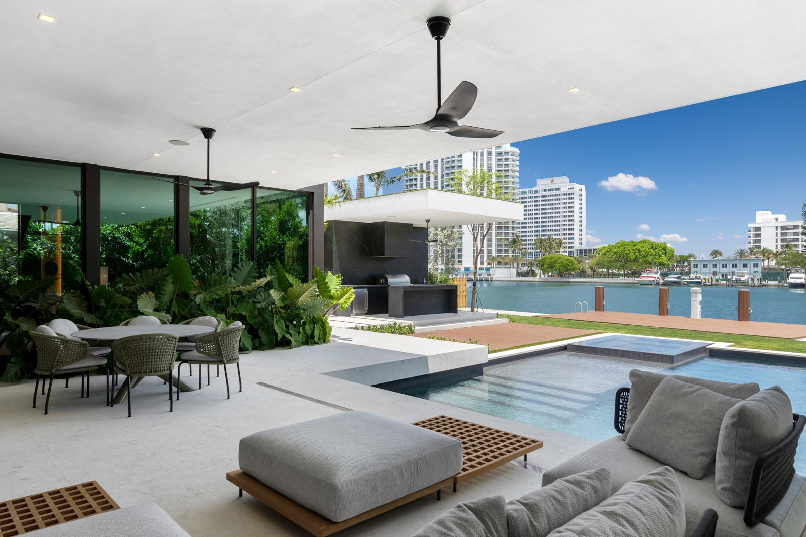 Outside awaits a waterfront oasis with pool, outdoor kitchen, and 78 ft of waterfront with a new private dock.