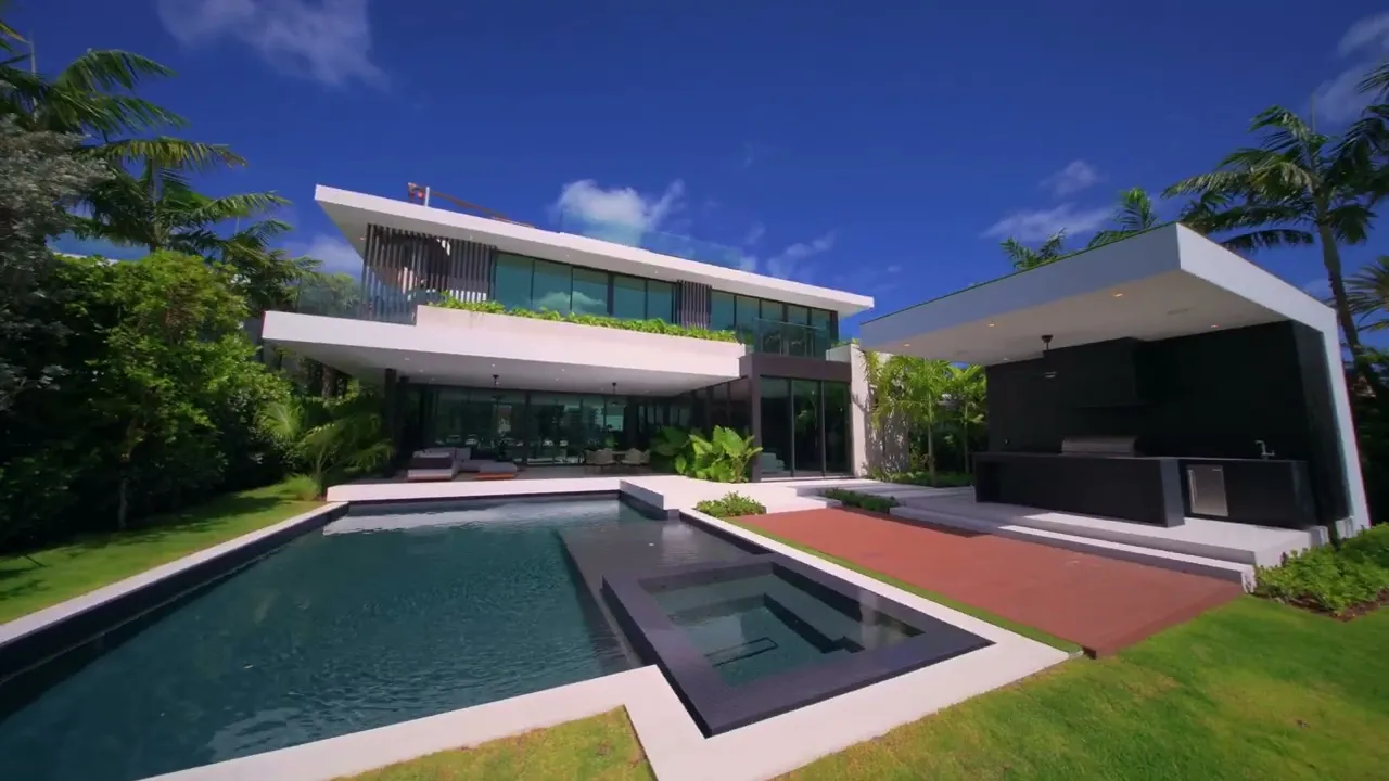 Minotti furnishings define its contemporary elegance, where sculpted architecture plays with light and shadow. Soaring ceilings, a striking floating staircase, and voluminous spaces create grandeur.